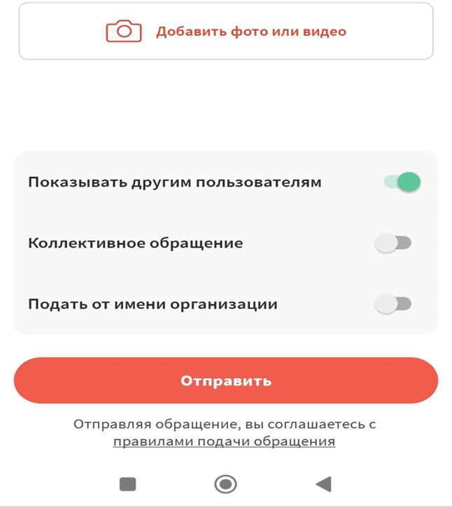 Важными опциями для граждан на цифровой платформе является возможность отметить на карте геолокацию проблемы, прикрепить фото- и видеоматериалы, сделать сообщение публичным (до момента отправки), отследить статус обработки сообщения.