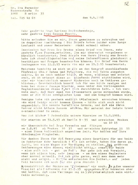 Письмо Евы Пернедер – правнучки П. И. Крузенштерна, праправнучки И. Ф. Крузенштерна |