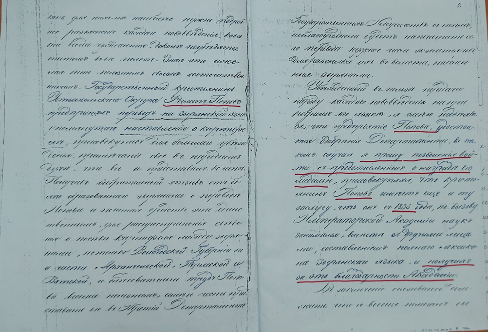 Рассказывает о вкладе Ф.Я. Попова в деле распространения картофеля в Коми крае и переводе на коми язык «Краткого наставления о посеве, уборке, хранении и употреблении картофеля» для популяризации культуры среди коми крестьян.