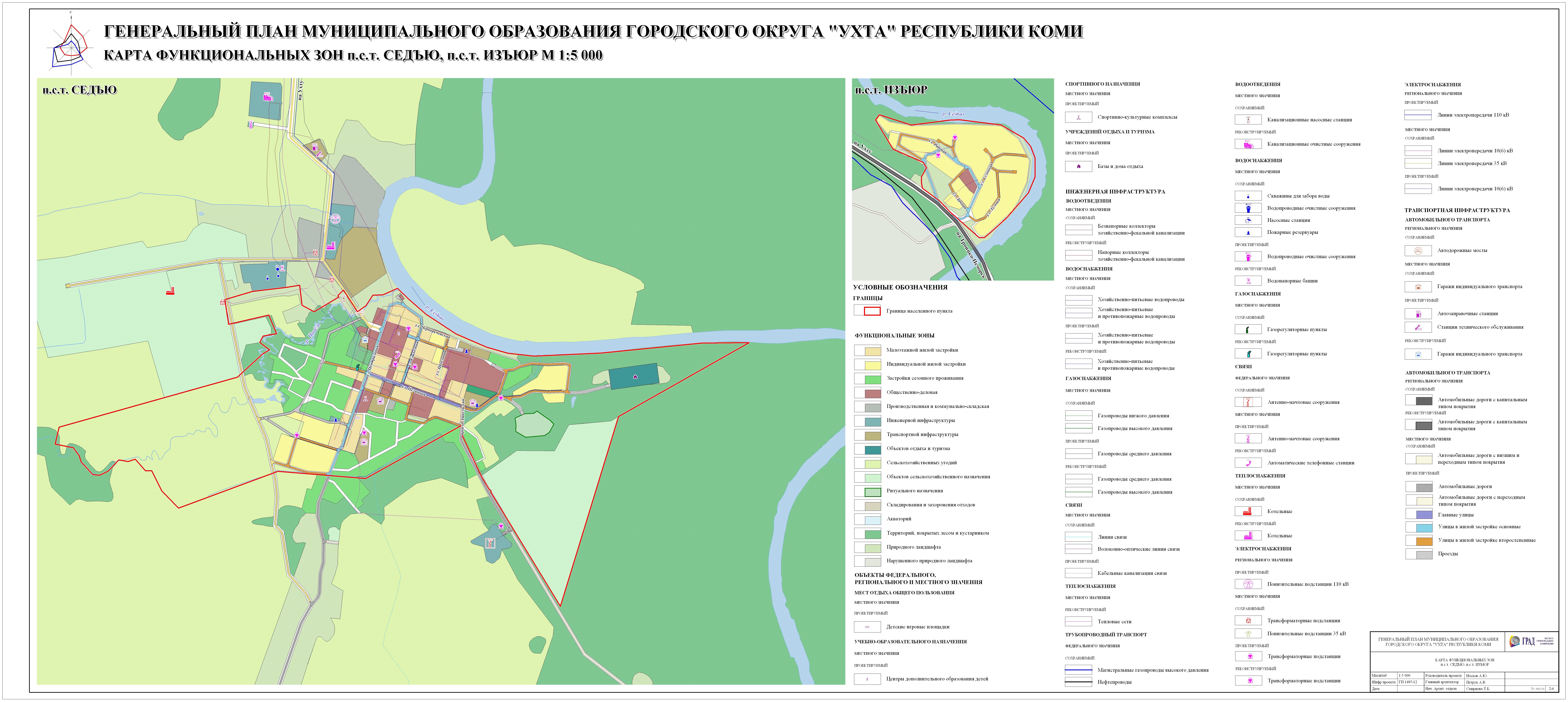 Карта функциональных зон п.с.т. Седъю, п.с.т. Изъюр